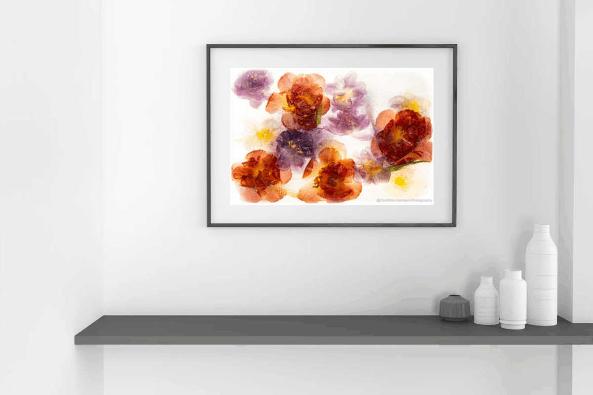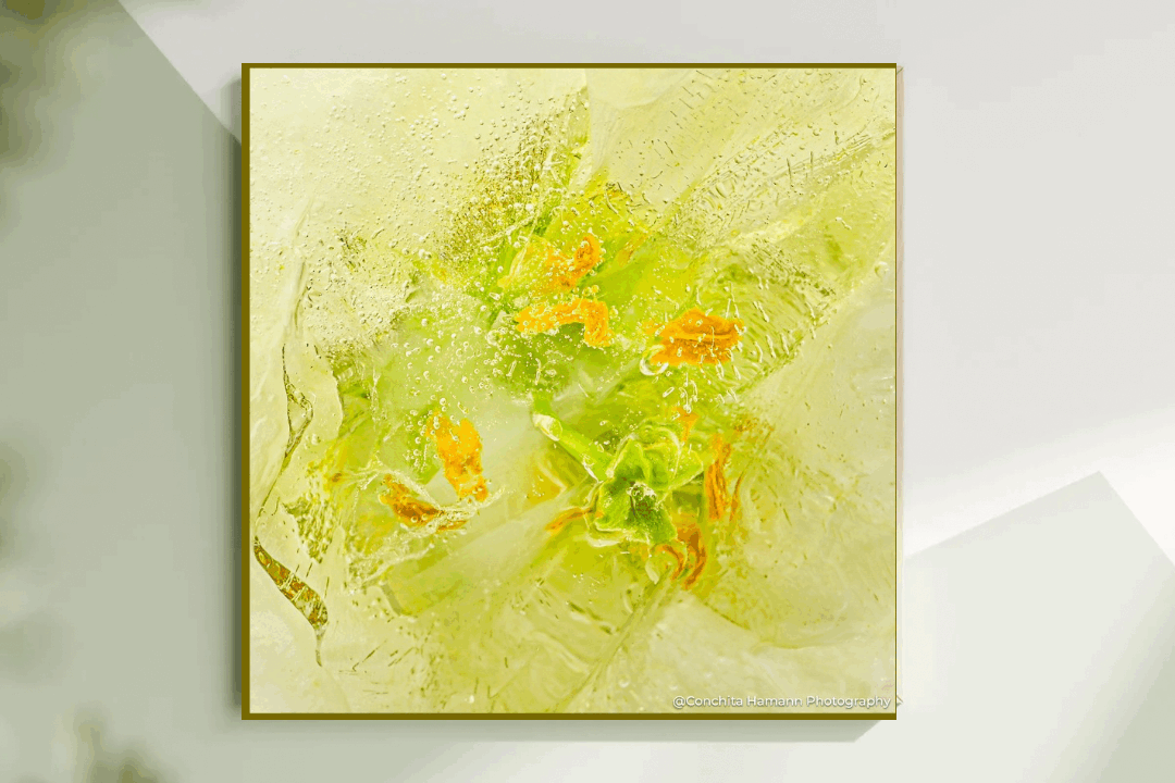 Ik creëer kunstzinnige composities van bloemen, zorgvuldig ingevroren in hun fragiele schoonheid. Deze bevroren momenten leg ik vast in fotografische beelden vol textuur, kleur en verstilling. Elke foto wordt afgedrukt op luxe fine art papier van 100% katoen; een tastbaar kunstwerk, uitgebracht in een gelimiteerde en gecertificeerde oplage, met oog voor detail en kwaliteit. Een kunstwerk voor wie geraakt wil worden.