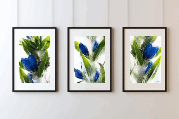 Ik creëer kunstzinnige composities van bloemen, zorgvuldig ingevroren in hun fragiele schoonheid. Deze bevroren momenten leg ik vast in fotografische beelden vol textuur, kleur en verstilling. Elke foto wordt afgedrukt op luxe fine art papier van 100% katoen; een tastbaar kunstwerk, uitgebracht in een gelimiteerde en gecertificeerde oplage, met oog voor detail en kwaliteit. Een kunstwerk voor wie geraakt wil worden.